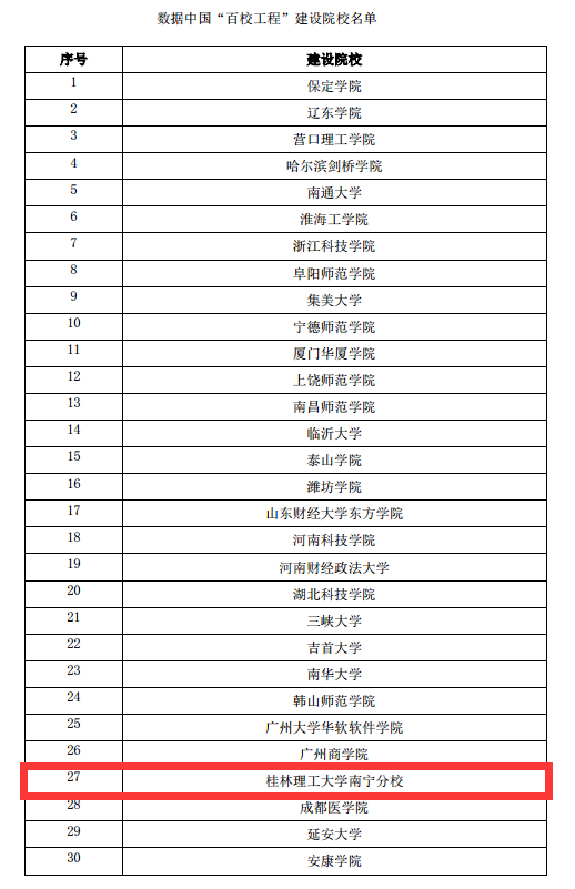 近日,数据中国“百校工程”项目院校及建设院校名单正式公布,南宁分校入选数据中国“百校工程”项目建设院校。