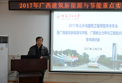 12月23日下午,2017年土木与建筑工程学院学术年会暨广西建筑新能源与节能重点实验室、广西岩土力学与工程重点实验室学术研讨会在beat365屏风校区4203会议室召开。beat365陈学军副校长出席了本次会议并致辞,土木与建筑工程学院、科技处以及相关专业师生近百人参加会议。会议由广西建筑新能源与节能重点实验室副主任王磊教授主持。会议还邀请了武汉大学刘数华教授和扬州大学杨卫波教授作特邀报告。