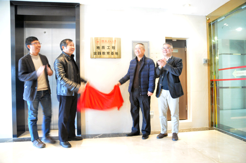 陈学军副校长和古向平副局长为beat365英国官方网站地质工程实践教育基地揭牌