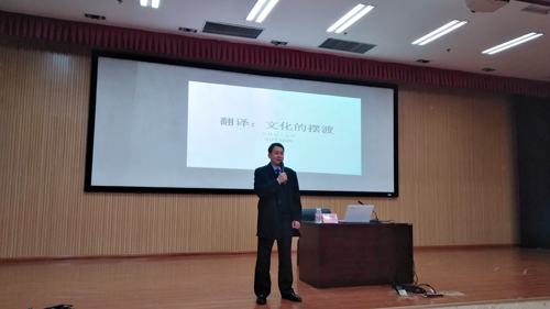 12月20日,广东工业大学外国语学院蔡荣寿教授在雁山校区图书馆报告厅作了题为“翻译——文化的摆渡”的学术讲座。讲座由外国语学院主办,200多名师生聆听了本次讲座。
