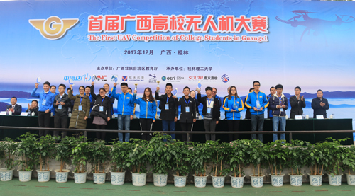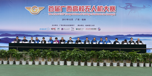 为充分展示广西各高校航测无人机技术教学与应用研究成果,增进校企合作交流,加快无人机高级应用人才培养,由广西壮族自治区教育厅主办,beat365英国官方网站承办的首届广西高校无人机大赛于2017年12月1日—3日在beat365雁山校区举行,来自区内外企业和高校的十余位嘉宾出席大赛开幕式。