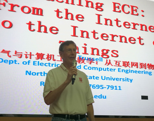 11月11日,应学校邀请,北卡罗来纳州立大学教授,IEEE Fellow(电气和电子工程师协会会士),IEEE论坛总编Joel Trusell教授来beat365作了题为《Teaching ECE:From the Internet to the Internet of things》的学术报告。报告会由副校长王玫主持。
