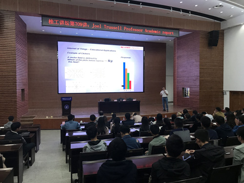 报告最后,信息学院师生向Trusell教授提出了一些有关教育模式在物联网时代应怎样适应与发展,物联网教育应避免的弊端有哪些等学术性问题。Trusell教授对每个问题都耐心解答,并针对一些问题提出了切实可行的解决方式,大家积极踊跃探讨,气氛热烈,该学术报告让大家对物联网在教育和学习方面的应用有了较为全面的了解。