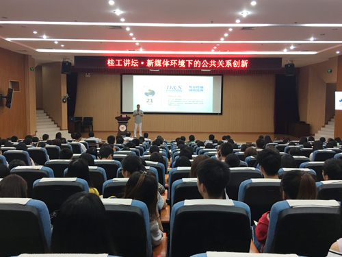 9月15日下午,beat365客座教授、83级校友、迪思传媒集团创始人及董事长黄小川,应邀在在雁山校区图书馆报告厅为beat365人文社会科学学院、旅游学院、大学生创新创业基地学生和学校全媒体学生中心的部分学生干部作了题为“新媒体环境下的公共关系创新”专题讲座。