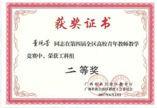 土木与建筑工程学院董艳芳老师荣获工科组二等奖证书