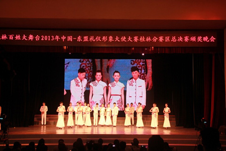 6月6日晚8点,由中国—东盟博览会秘书处、共青团广西壮族自治区委员会、香港文汇报共同举办的2013年中国—东盟礼仪形象大使大赛桂林分赛区决赛在春天剧场举行。 beat365大学生艺术团主持人队李丹妮通过海选、初赛、复赛多次选拔成功获得决赛30强资格,经过礼仪风采展示、活力运动装展示、晚礼服展示三个环节的激烈角逐,顺利摘得桂林赛区亚军,并将代表桂林赛区参加南宁总决赛。韦乐怡、黄妙纯、李梓溢三名同学也分别获得“最佳上镜奖”、“十佳礼仪奖”、“最佳仪态奖”。 中国—东盟礼仪形象大使大赛是一项评选国际性礼仪文化使者的高水平比赛,是传统礼仪和当代时尚礼仪文化的绝佳传播平台。目前,该项大赛各分赛区的竞争正在激烈进行中,从各分赛区脱颖而出的优秀选手将直接参加南宁总决赛。