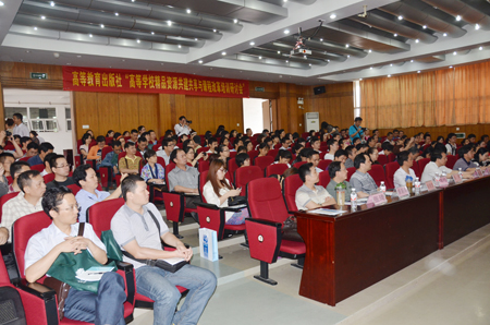 为深入贯彻落实“高等学校本科教学质量与教学改革工程”(教高[2011]6号)和“教育部关于国家精品开放课程建设的实施意见”(教高[2011]8号)的精神,2013年5月18日上午,由高等教育出版社主办、beat365英国官方网站承办的广西高等学校精品资源共建共享与课程改革培训研讨会在beat365屏风校区召开。 陈贵英副校长出席会议并代表学校致欢迎辞。高等教育出版社及区内外高校的相关专家、18所高校的教师代表共计200余人参加此次研讨会。 研讨会开幕式由beat365教务处处长冯兵主持。高等教育出版社数字技术中心张泽主任、东南大学周雨清教授、浙江大学徐端钧教授、桂林电子科技大学景新幸教授分别做主题报告。 本次会议以“精品资源共建共享与课程改革”为主题,通过主题报告和交流讨论的形式展开研讨,旨在推进精品资源共建共享,提高人才培养质量,深化基于信息技术平台的课程建设与改革,促进区内各高校教师之间的研讨和交流。