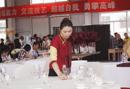 谭艳妮同学在中餐摆台比赛现场