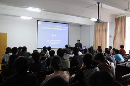 4月26号上午,北京大学地球与空间科学学院李江海教授在屏风校区教四楼4406会议室为beat365师生作了题为“显生宙古板块再造成图及其运动学分析”的学术报告。报告会由地球科学学院院长冯佐海教授主持,相关专业师生参加了报告会。 报告会上,李江海教授从1930年德国气象学家魏格纳提出的大陆漂移学说谈起,介绍了前人在古板块再造方面的研究进展及存在的主要问题;阐述了该领域最新的研究方法、计算机模拟软件,岩相、古地理方面的新思路和创新点,各个地质时代古板块的再造图;并以塔里木板块为例详细论证了古板块再造的过程及方法。李江海教授严谨细致的报告,拓宽了师生们的研究视野。会后,李教授还与师生进行了交流与讨论。