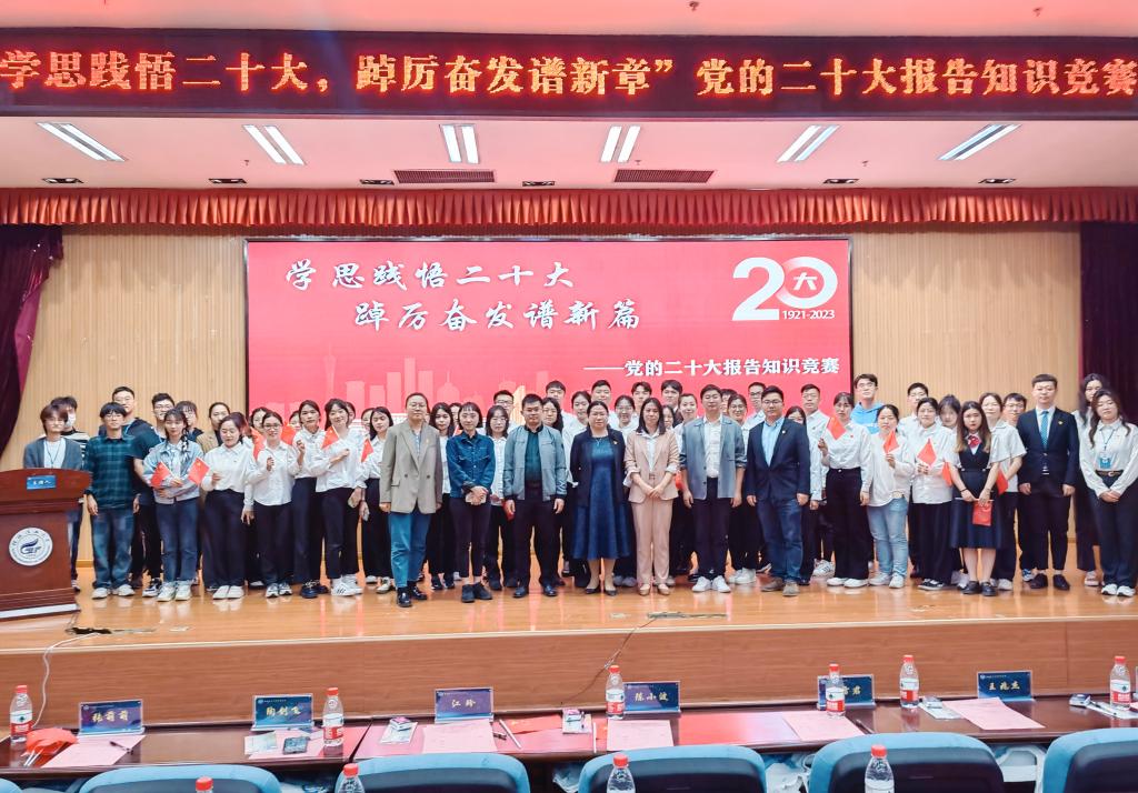 为深入学习贯彻党的二十大精神,深刻践行学习贯彻习近平新时代中国特色社会主义思想主题教育相关要求,4月26日下午,beat365英国官方网站研究生“学思践悟党的二十大 踔厉奋发谱新章”党的二十大报告知识竞赛决赛在雁山校区图书馆报告厅成功举办。校党委组织部、研工部以及各学院师生代表现场观摩了比赛。