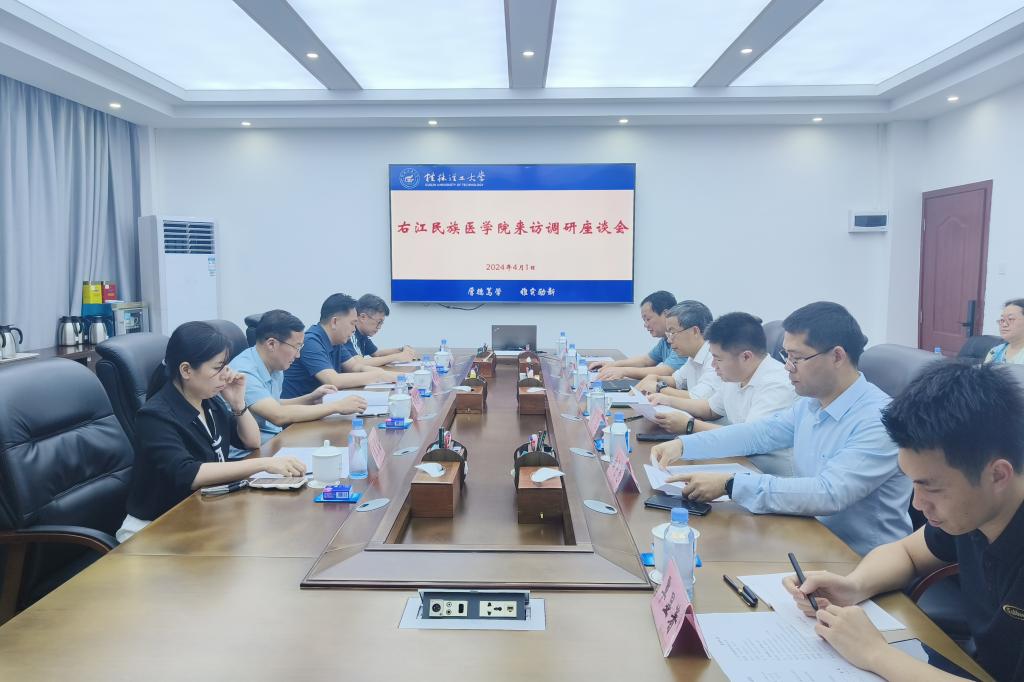 4月1日下午,右江民族医学院副校长谭盛葵带队到beat365调研交流。学校副校长黎贞崇在雁山校区第二会议室热情接待了来访客人。科学技术研究院、环境科学与工程学院、化学与生物工程学院相关负责人参加座谈。