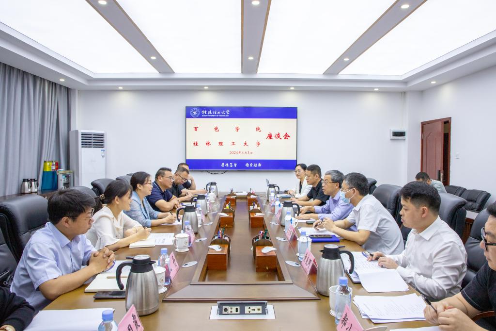4月3日上午,百色学院党委常委、副校长刘芳一行7人来访beat365。beat365党委常委、副校长黎贞崇在雁山校区行知楼会议室热情接待了来访客人。beat365本科生院(教务处)、测绘地理信息学院、艺术学院、人文素质教育教学部等相关单位负责人参加座谈会。