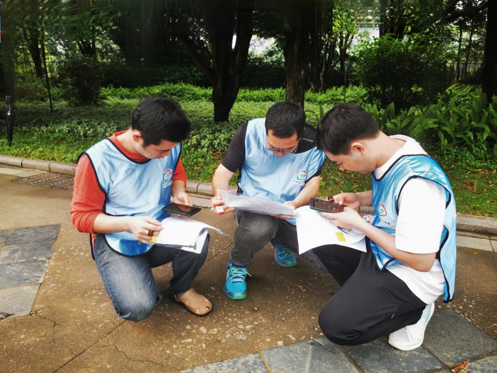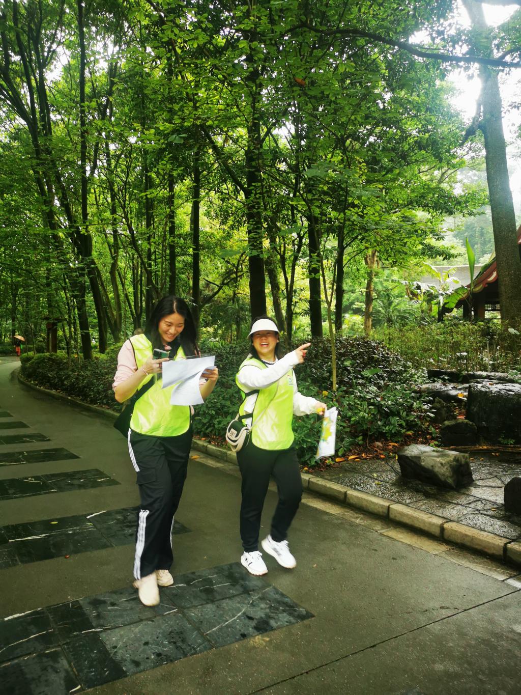 本次活动将定向运动与主题教育活动有机结合,参赛选手须先完成知识问答,根据答案找寻行进路线,再利用地图和指北针在规定时间内完成各目标点的打卡任务。在完赛过程中,参赛队员一路奋勇向前,或穿梭于林间小道,或攀爬于山坡之上,认真寻找隐藏在植物园各处的打卡点,既有拼搏竞技、你追我赶,又有团队默契、携手共进。
