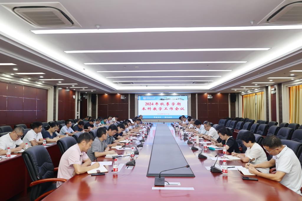 王敦球认真听取了各部门、各单位的汇报,充分肯定了上半年的工作成效,并就进一步做好新学期本科教学工作提出三点意见:一是要强化理论学习,用“扣扣子”精神对标工作要求。要深刻把握国家对本科教育教学改革的政策导向,从第一颗“扣子”开始就要紧跟现代高等教育的发展动态,加快形成高水平本科人才培养体系。二是要强化问题导向,用“钉钉子”精神抓好改革攻坚。各学院各部门要从突出专业结构调整、强化专业内涵建设、提高学业挑战度、稳步提升生源质量四个方面集中发力、重点攻坚,不断提高人才培养质量和育人实效。三是要强化责任担当,用“担担子”精神推动工作落实。以推进学校本科教育教学“十大计划”为目标要求,按照岗位职责要求主动担当作为,着力培育高水平本科教学成果,切实提升本科教学对学校教育事业高质量发展的支撑力、贡献力。