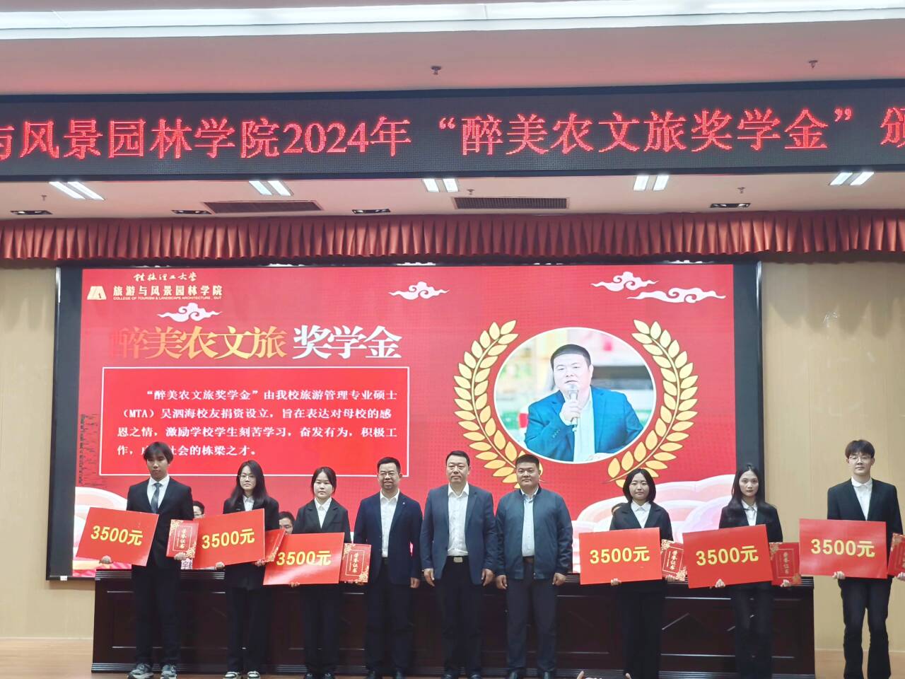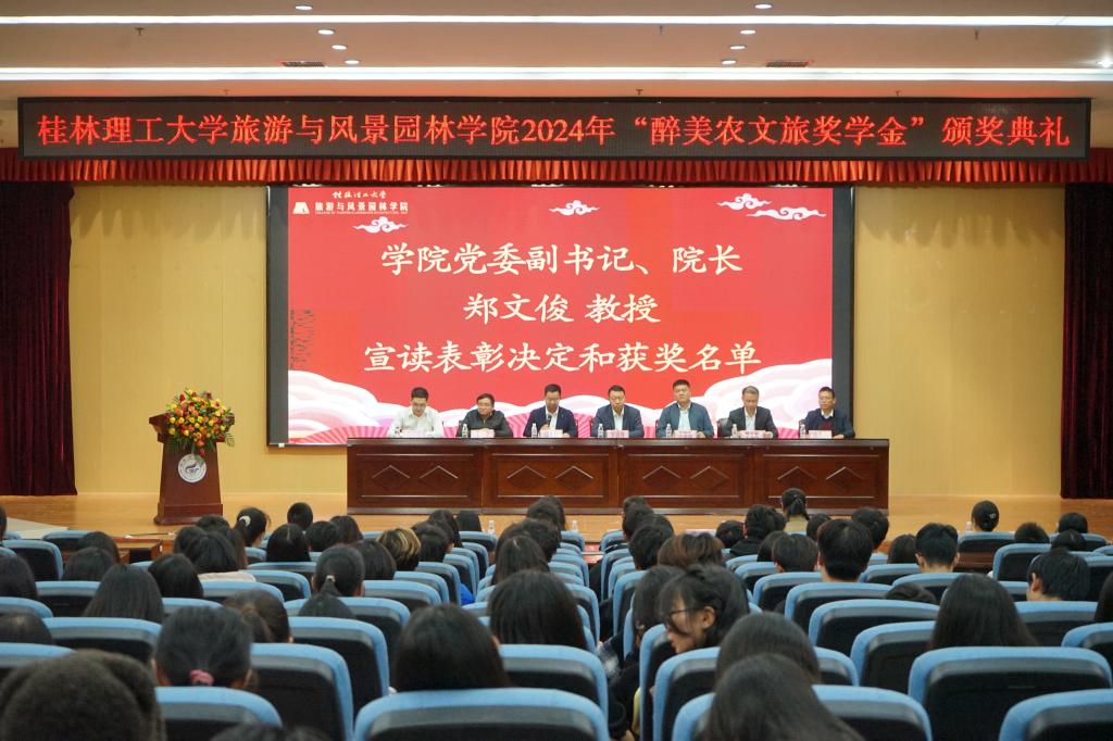 12月1日下午,beat365旅游与风景园林学院在雁山校区图书馆报告厅举行2024年“醉美农文旅奖学金”颁奖典礼。学校党委常委、副校长罗盛锋出席典礼。福建醉美乡村旅游投资有限公司董事长、“醉美农文旅奖学金”设立者、学院2017级MTA旅游管理专业杰出校友吴泗海,旅游与风景园林学院相关负责人,学校校友与国内合作处相关工作人员,旅游与风景园林学院教师代表、辅导员、学生代表等参加典礼。