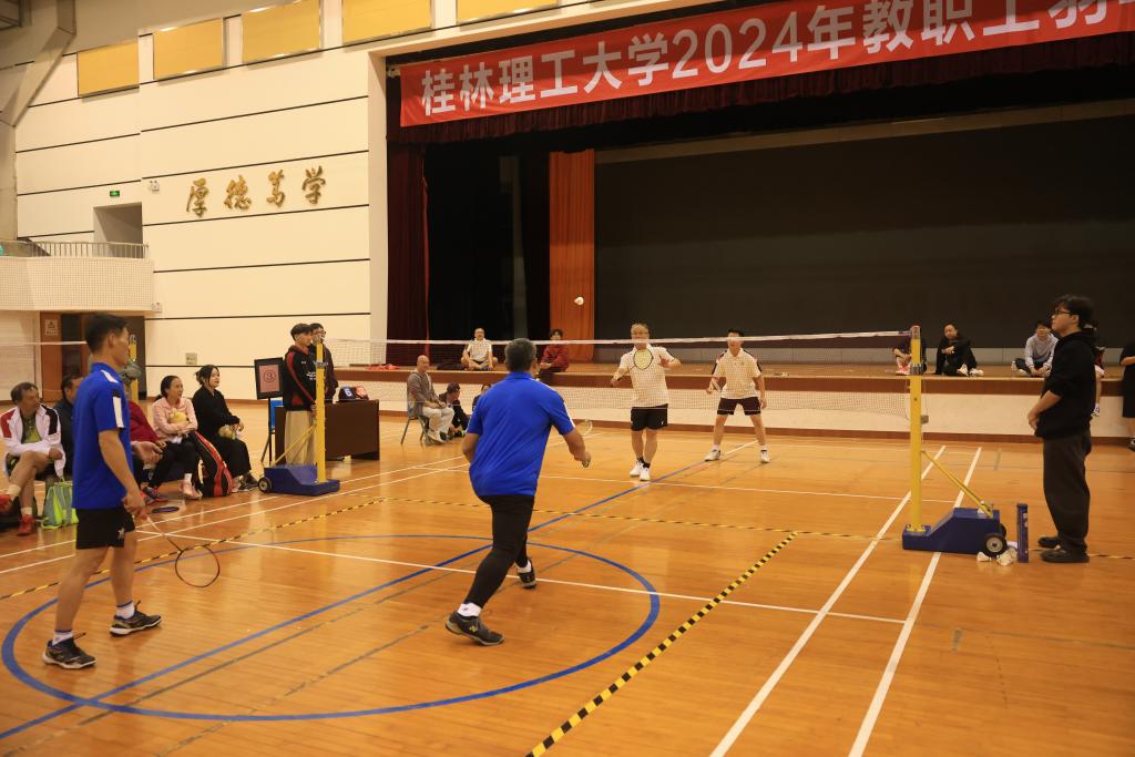 比赛伊始,还举行了羽毛球全明星表演赛。学校党委副书记、校长王敦球与票选出来的教职工羽毛球高手一道,为观众奉献了一场精彩的全明星羽毛球赛。