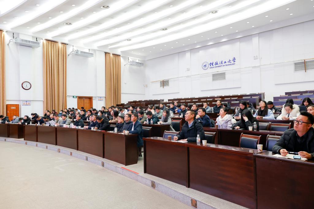 12月11日下午,自治区党委党校副校长,广西行政学院副院长、校务委员谭泽松应邀到beat365为青年干部培训班讲授《习近平新时代中国特色社会主义思想世界观和方法论》专题辅导报告。学校党委副书记吴志强主持报告会。学校处科级青年干部、专业骨干教师、党外人士等120余名学员参加报告会。
