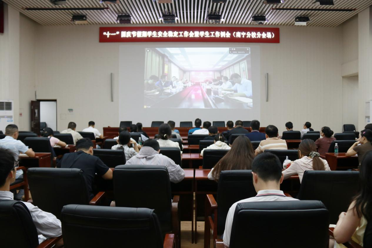 9月25日上午,学校国庆节假期学生安全稳定工作会议在屏风校区教八栋三楼会议室顺利召开。学校党委常委、副校长唐壮东出席会议并讲话。学工部(处)、研工部、保卫部(处)、校团委主要负责人,各二级学院分管学生工作党委副书记以及学工部(处)、研工部、校团委全体干部参加本次会议。南宁分校设分会场。