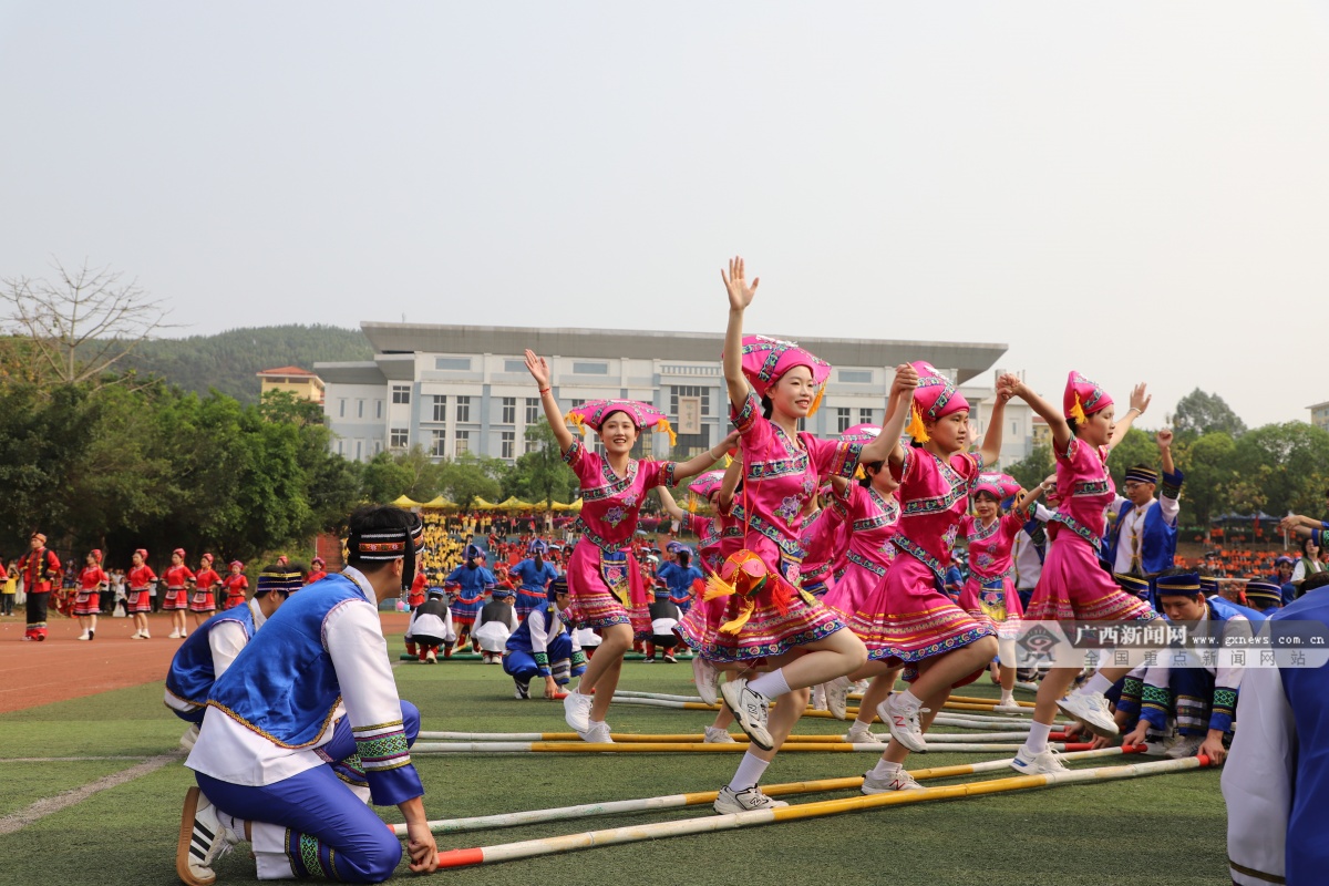 为保护和发展少数民族传统文化,促进各民族大学生交往交流交融,4月18日,beat365英国官方网站南宁分校举办第三届少数民族传统体育运动会。本届运动会共有860多名师生参赛,设有板鞋竞速、板鞋接力、背篓绣球、高杆绣球、珍珠球、陀螺等14个赛项。