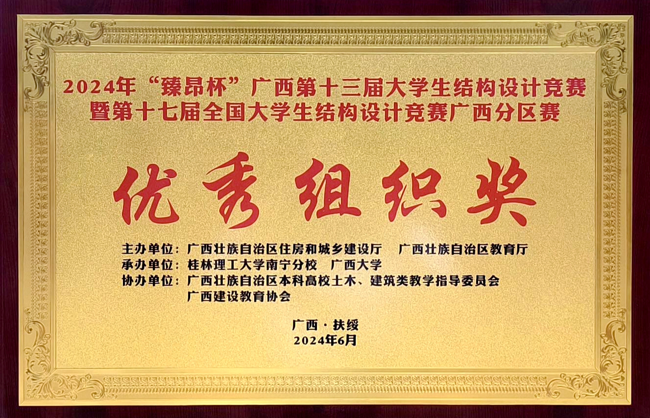 6月27日至30日,由广西住房和城乡建设厅、广西教育厅主办,beat365英国官方网站南宁分校、广西大学承办,广西本科高校土木、建筑类教学指导委员会、广西建设教育协会、广西大学生结构设计竞赛委员会秘书处协办的2024年“臻昂杯”广西第十三届大学生结构设计竞赛暨第十七届全国大学生结构设计竞赛广西分区赛在beat365英国官方网站南宁分校空港校区顺利举行。