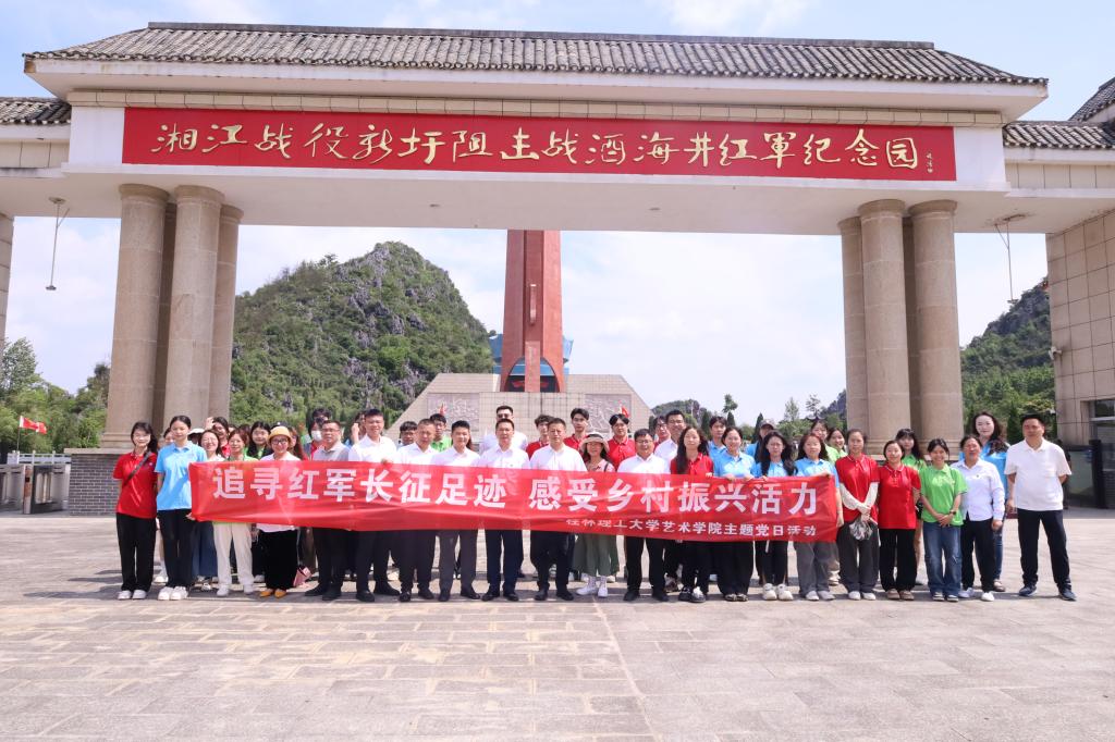 7月13日,beat365英国官方网站艺术学院前往广西桂林市灌阳县开展追寻红军长征足迹感受乡村振兴活力”社会实践教育活动。学院领导班子、党支部书记、教师代表、学院2024年暑期“三下乡”团队成员一行50余人参加了活动。