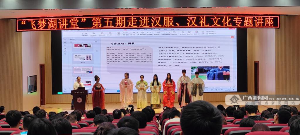 打造多维度、沉浸式、互动性的阅读情境,结合世界读书日、迎新季、毕业季等时间节点,每年开展读书月、金秋阅读季、“飞梦湖”讲堂、“阅读推广人”荐书、“书香班级”评选等43项活动,开好阅读主题“第二课堂”,激发师生阅读内驱力。厚植培育时代新人的中华优秀传统文化底色,打造广西三月三民族团结嘉年华快闪活动等校园文化品牌,举办稻秆画进高校巡展、“书香筑梦阅读有光”经典诵读、中华经典诗文知识竞赛等活动,全方位、多层次持续推进书香校园建设。
