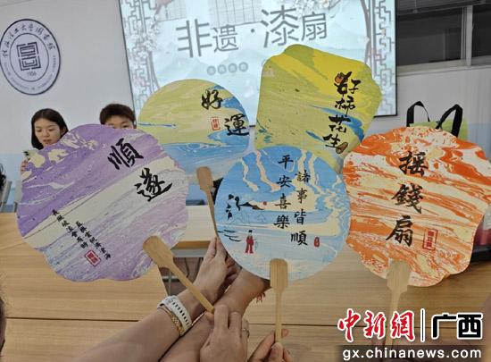 图为同学们展示漆扇作品。李英远 摄
