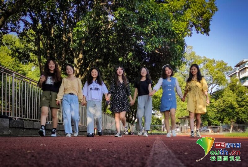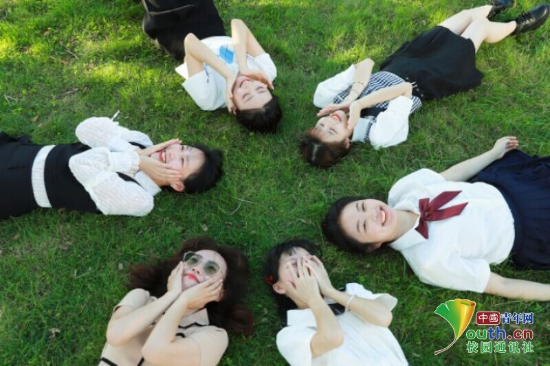图为六位姐妹花在草地上的合照。中国青年网通讯员 余丽冰 提供