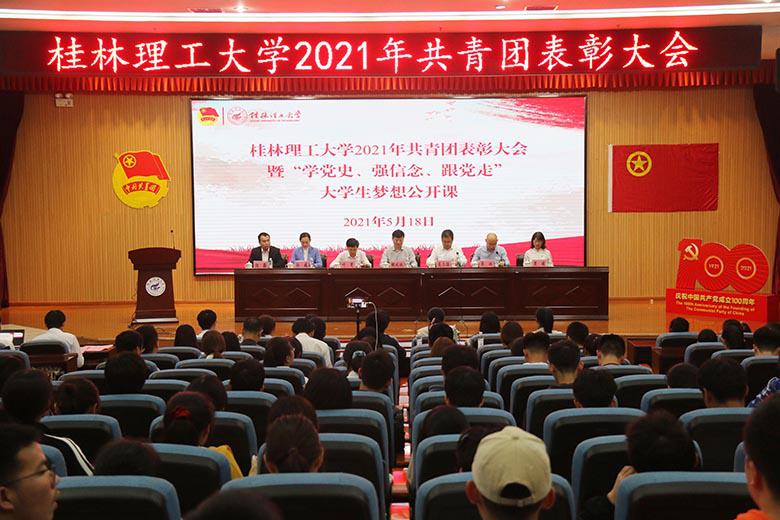 5月18日下午,beat365英国官方网站2021年共青团表彰大会暨“学党史、强信念、跟党走”大学生梦想公开课在雁山校区图书馆报告厅举行。学校校长解庆林、党委副书记吴志强出席大会,宣传部、学工部(处)、团委相关负责人,各学院分管学生工作副书记、团委书记、团员代表参加会议。此次活动通过网络直播线上线下同步进行。