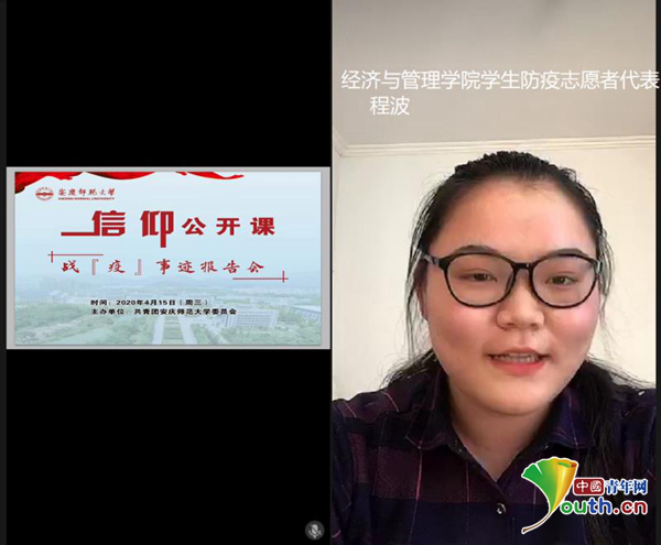 安庆师范大学的学生志愿者为同学们分享抗疫故事。受访者供图