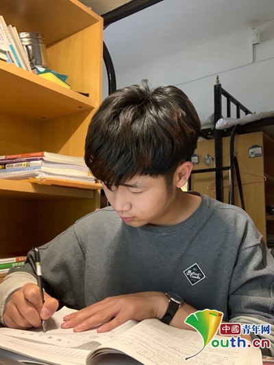 江苏建筑职业技术学院学生曹童在宿舍学习。受访者供图