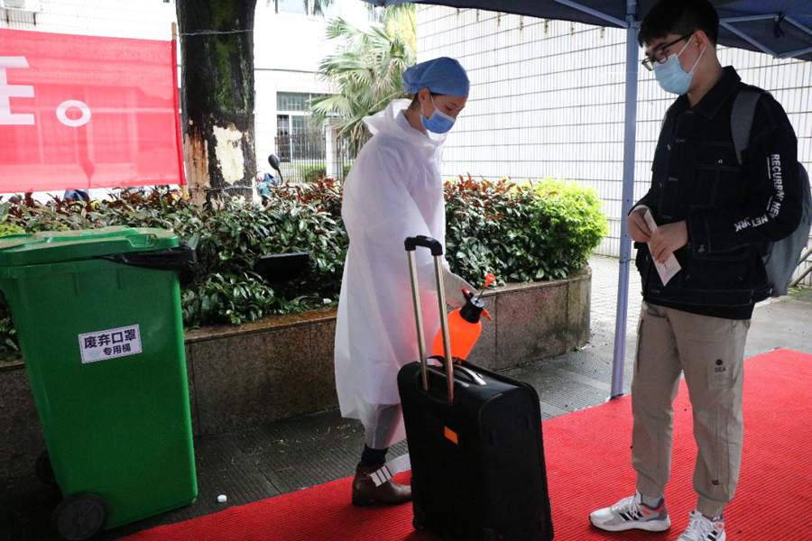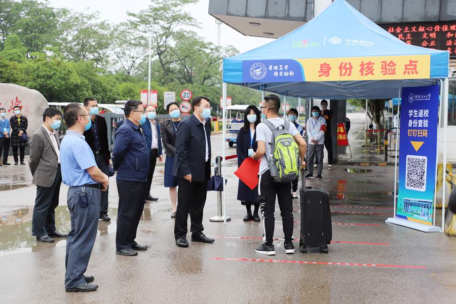 19日上午开始,beat365英国官方网站屏风校区、雁山校区毕业年级学生陆续返校。学校领导带队值守,严把校门大关,严格执行“一测二验三核四通过”的程序,真正做到“精准防控、守护安全”,筑起学生入校第一道防线。学校大门处设立了学生入校通道,工作人员认真开展体温检测、身份信息核验、健康状况核查、学生引导入校、行李物品消毒、交通秩序疏导等工作,热情周到的服务让同学们感受到了久违的集体温暖。同学们佩戴口罩、间隔排队、自觉测温、配合查验,通过专用通道入校,一切井然有序。不少学生表示,很想念学校和老师同学们,会更珍惜在校的学习时光,好好学习。