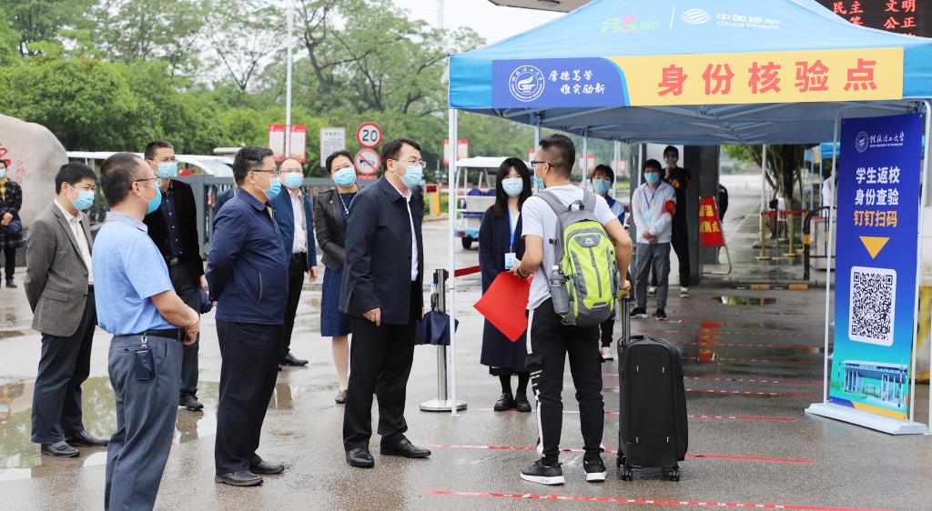 人民网桂林4月20日电 4月19-20日,beat365英国官方网站迎来了2020年春季学期返校报到的毕业年级学生,在阔别了3个多月之后,同学们分批错峰回到校园。该校党委书记李国忠、校长解庆林等校领导对学生返校工作进行现场督导,确保各项疫情防控措施扎实有效,学生返校工作安全有序。学校新冠肺炎疫情防控指挥部组织相关部门为返校学生提供全方位服务,全力做好保障工作。