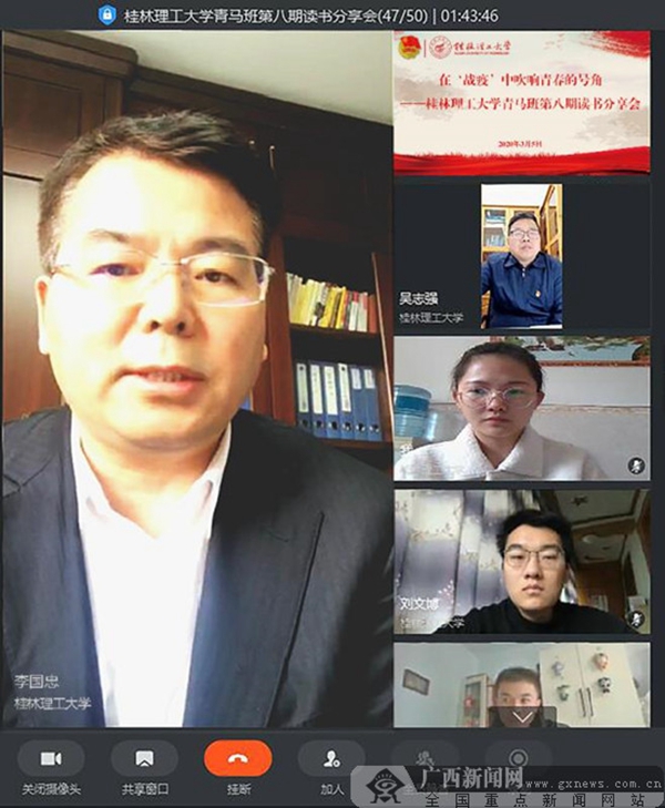 这是在全国共抗疫情的当下,beat365英国官方网站青年马克思主义工程班(下称青马班)学员开展的一场特殊的线上读书分享会,该校党委书记李国忠与学员交流时语重心长情真意切。