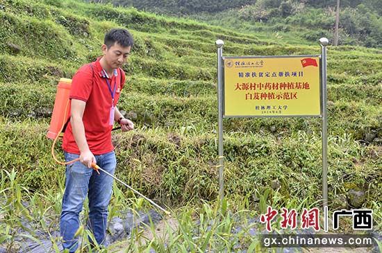 图为大源村第一书记田明浩在中药材种植基地劳动