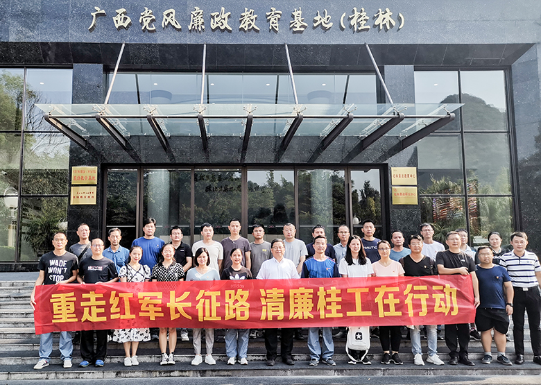 为深入贯彻落实学校2022年全面从严治党暨“清廉桂工”建设工作会议精神,9月16日,学校开展 “重走红军长征路 清廉桂工在行动”主题教育活动。学校党委副书记吴志强,党委常委、纪委书记韦学敏,党办校办、纪委办、财务处、资产管理处、基建后勤处、后勤服务集团、招生就业处、资产经营公司等部门30余人参加主题教育活动。