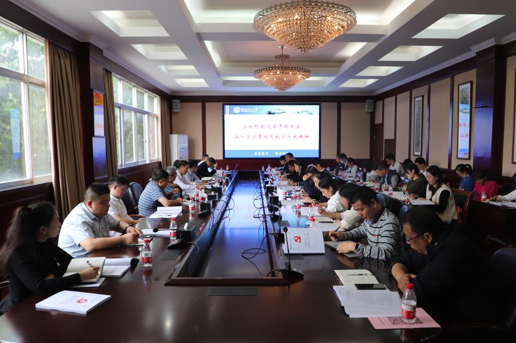 11月3日,学校纪委在屏风校区教八楼会议室召开纪检巡察干部会议,传达学习党的二十大精神和党的二十届一中全会精神,深刻学习领会习近平总书记重要讲话精神,研究部署贯彻落实举措。学校党委常委、纪委书记韦学敏作精神传达并讲话。学校全体在家纪委委员,专职纪检巡察干部,二级党组织纪委书记、纪检委员,党支部纪检委员代表参加会议。