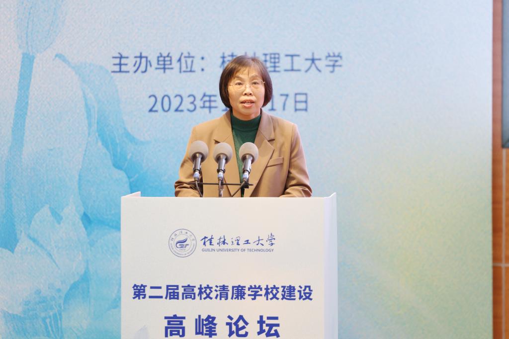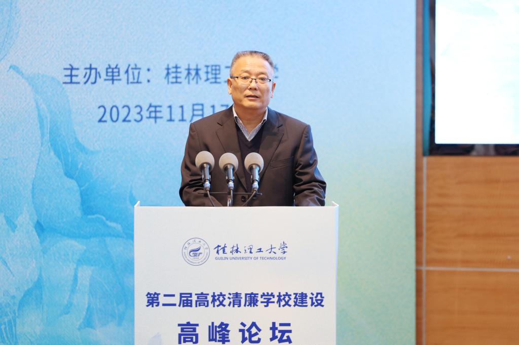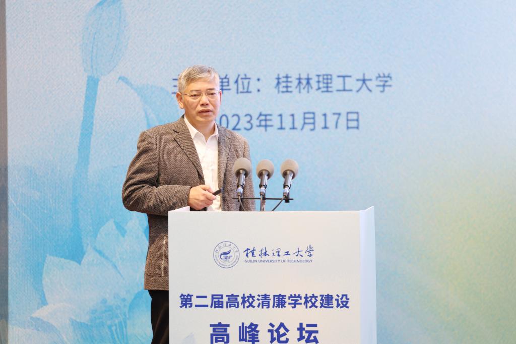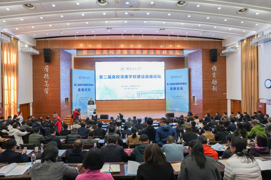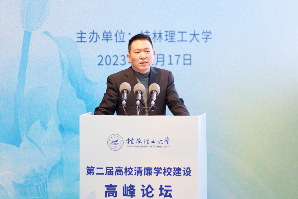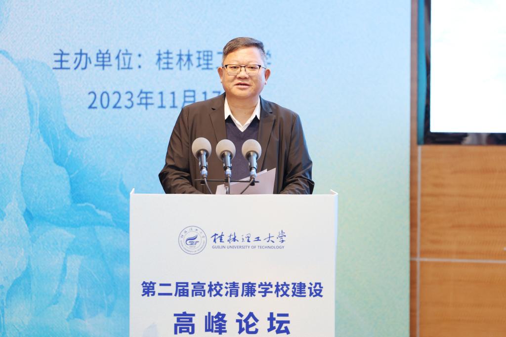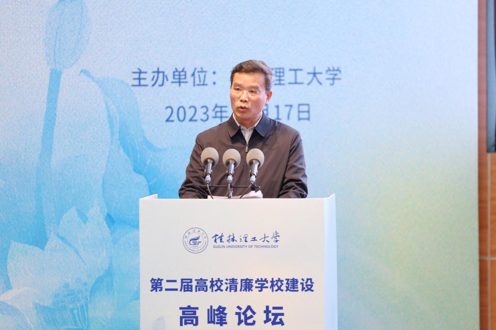 为深入学习贯彻习近平新时代中国特色社会主义思想,全面贯彻落实党的二十大精神,深入学习贯彻习近平总书记关于教育的重要论述,深入学习贯彻习近平总书记视察广西“4·27”重要讲话精神和关于广西工作系列重要指示精神,扎实推进新时代党的建设新的伟大工程,全面深化清廉广西、清廉学校建设,11月17日,由beat365主办的第二届高校清廉学校建设高峰论坛在屏风图书馆报告厅顺利举行。本次论坛以“全面深化清廉学校建设,充分发挥纪委职能作用,为高校高质量发展提供‘廉动力’”为主题。
