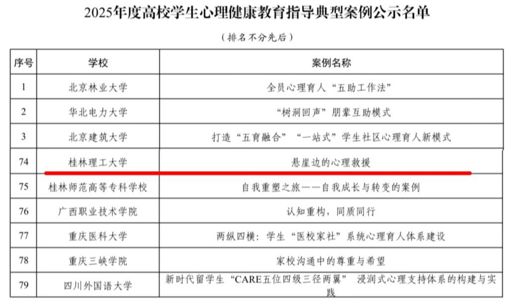 1项心理危机干预案例成功入选全国2025年度高校学生心理健康教育指导典型案例公示名单