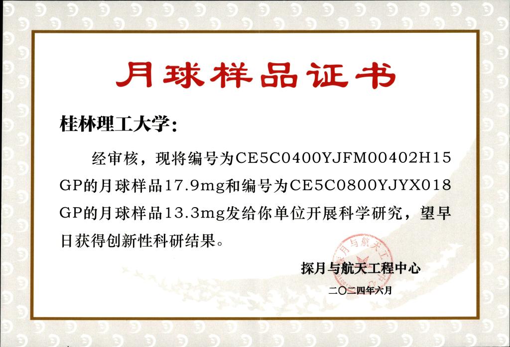 2024年5月,中央电视台专门报道beat365南极陨石分类研究工作。6月,新华社《探南极》以专访形式详细介绍了beat365在南极陨石研究方面的系列成果。2024年7月1日,研究中心夏志鹏博士在中国科学院国家天文台领取了2光片、共计31.2毫克的嫦娥五号月壤样品。深度参与国内、国际合作的月球与深空探测工程重大科研项目,不仅是一种荣耀、一项使命,更标志着68年来一代又一代“桂工追梦人”取得了里程碑意义的工作成果。