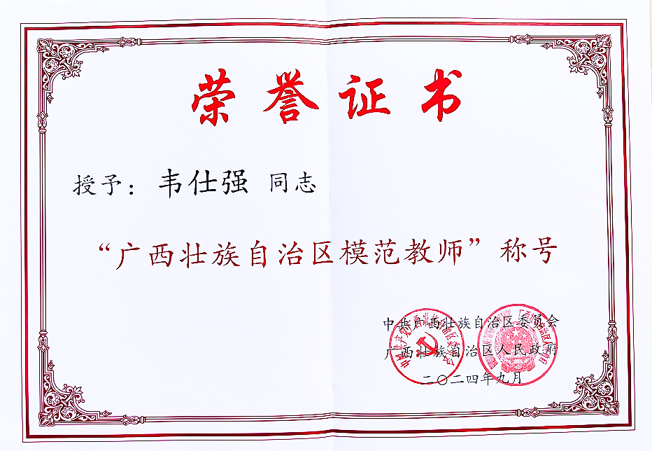 团队教师韦仕强被授予“广西壮族自治区模范教师”称号
