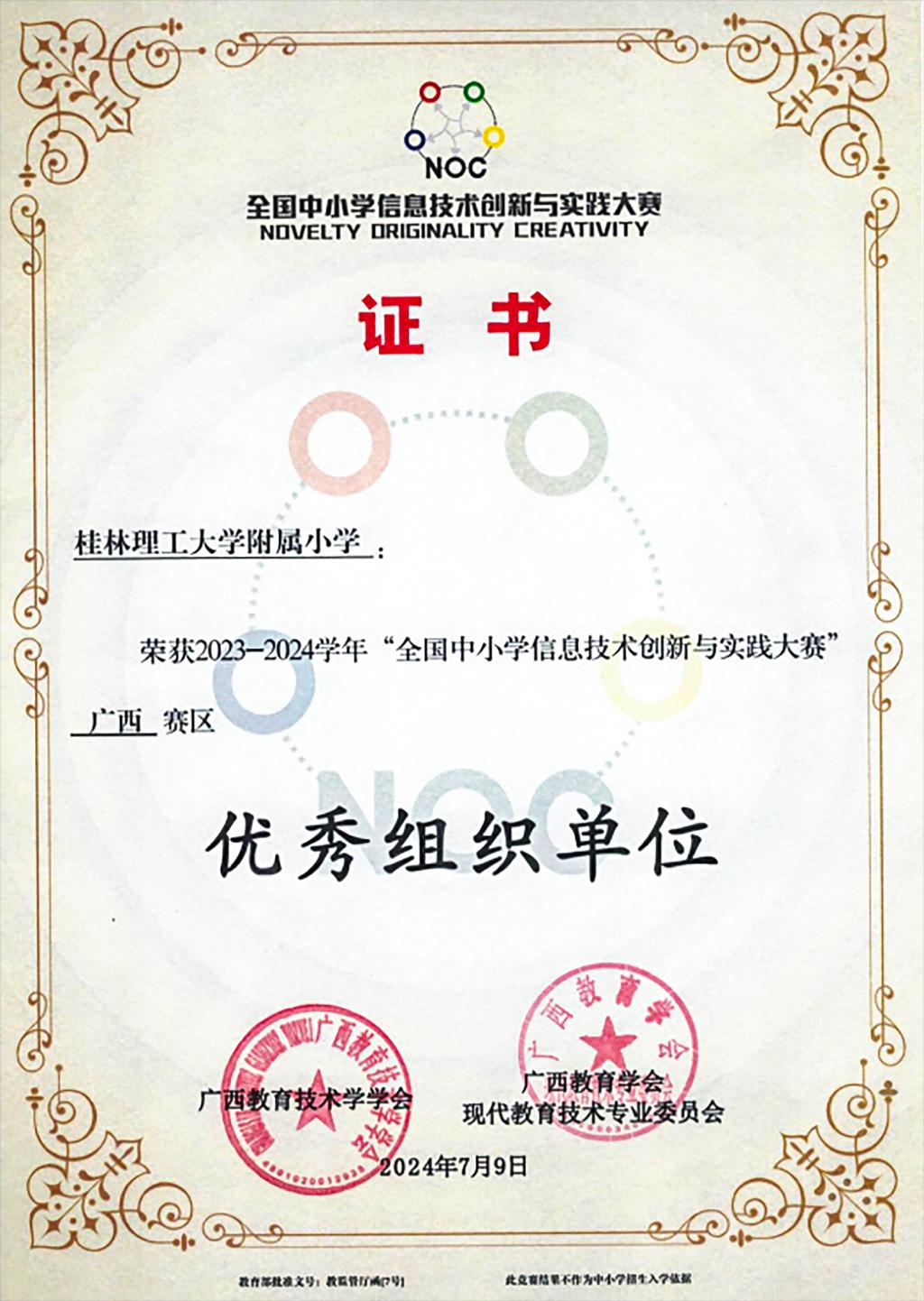 荣获全国中小学信息技术创新与实践大赛广西赛区优秀组织单位