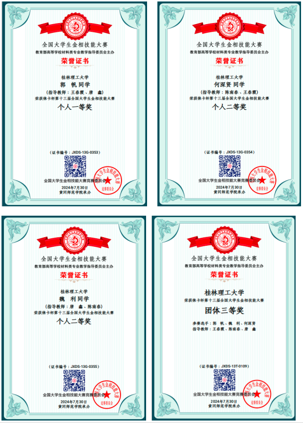 在“第十三届全国大学生金相技能大赛”中取得佳绩