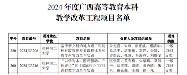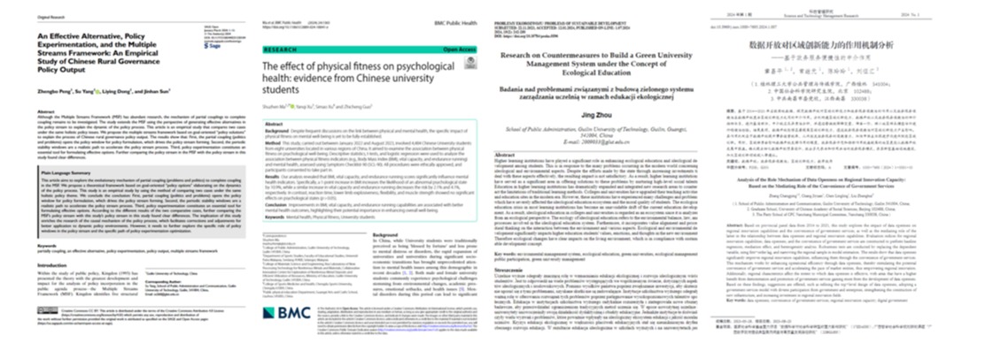 紧紧抓住博士点培育建设契机,严格对标对表,认真推动学科、学位点建设。获得国家社科基金1项、教育部人文社科研究项目3项、广西哲学社会科学研究项目7项、其他厅局级项目2项、横向项目1项;在SCI期刊发表论文2篇、北大中文核心期刊论文1篇,1份资政报告被市厅级党委政府部门采纳;获全国2024年民政政策理论研究成果奖二等奖1项、三等奖3项,获国家民委社会科学研究成果奖优秀奖1项,获广西民政厅民政政策理论研究一等奖1项、三等奖1项,获广西民宗委系统优秀调研报告三等奖1项;公共管理研究教学团队荣获自治区级研究生课程思政示范基层教学组织;1篇案例入选第八届中国研究生公共管理案例大赛百篇优秀案例,1篇案例入选教育部主题案例征集项目。