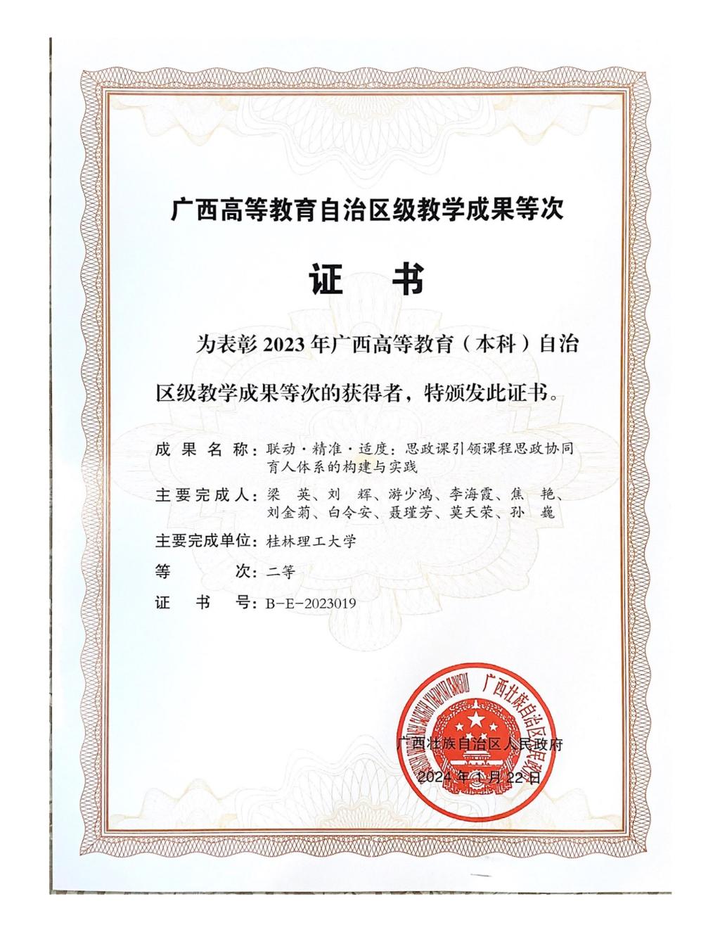 荣获自治区级教学成果二等奖