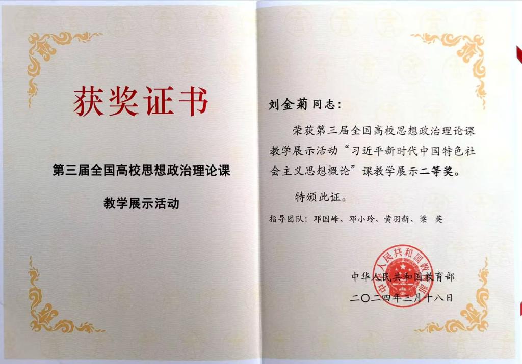 荣获第三届全国高校思想政治理论课教学展示活动二等奖