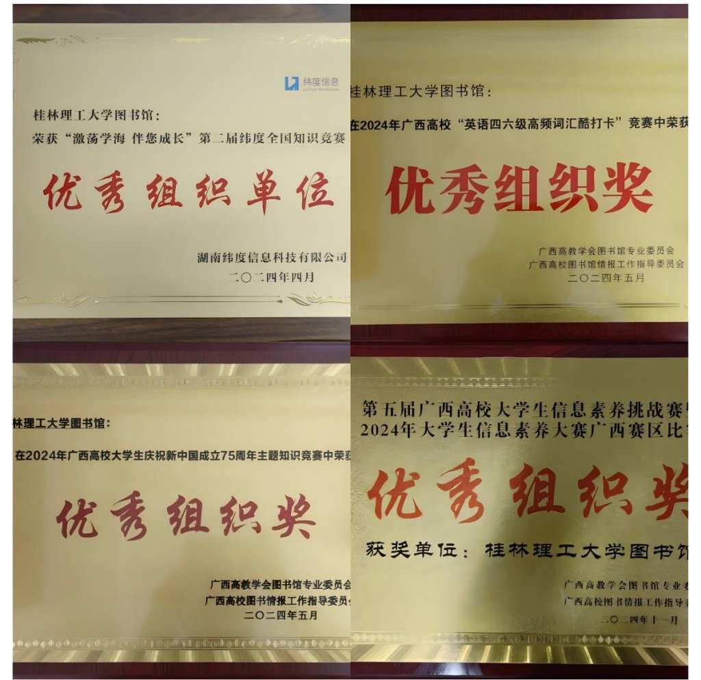 注重引导、激励馆员以理论研究推动业务技能提升,努力培育一支更高质量的专业化馆员队伍。图书馆团队在2024年桂林市图书馆学会组织开展的业务技能大赛中荣获第二名,在桂林高校图书馆中名列首位。在省级及以上图书馆学会主办的各类赛事中获“优秀组织奖”10次。