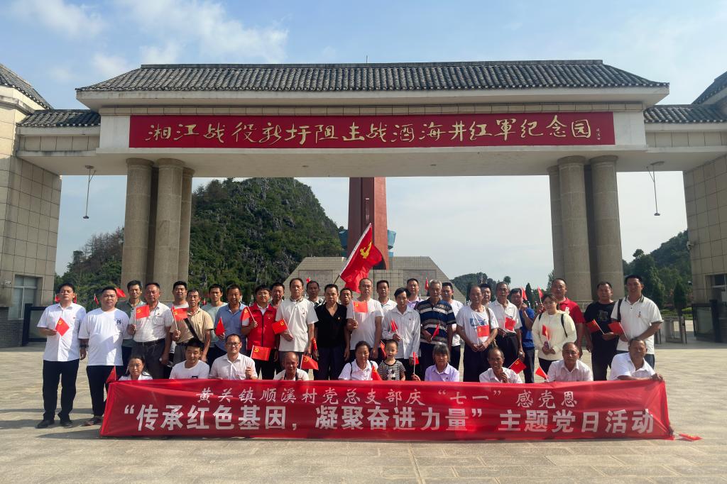 6月30日,顺溪村党总支组织全体党员赴湘江战役新圩阻击战酒海井红军纪念园开展“传承红色基因,凝聚奋进力量”主题党日活动,缅怀革命先烈,接受革命传统教育,学习革命先辈艰苦奋斗精神。