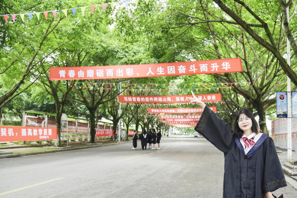 “青春由磨砺而出彩,人生因奋斗而升华”“你们是母校的骄傲,记得要常回家看看”……在潘丽宁同学看来,桂工的毕业标语总是那么暖心而又浪漫。即将与昔日的朋友们告别,心中万般不舍,但她清楚地知道,他们终将带着对母校的不舍和祝愿奔赴天南地北,在各自选择的道路上努力奋斗,为着美好的未来奋力拼搏。