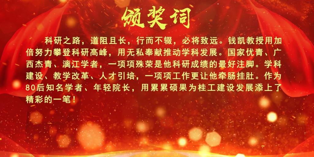 为大力表彰在学习贯彻党的二十大精神,推动学校各项事业加快发展高质量发展中涌现出来的先进集体和先进个人,向过去一年在人才培养、科技创新、社会服务、党的建设等各方面作出突出贡献的事件、团队、人物致敬,学校首次开展“出彩桂工·年度致敬”评选表彰活动。自活动启动以来,受到全校师生的广泛关注和热烈响应,经过推荐、审核和遴选,最终选取了7项年度致敬事件、3个年度致敬团队和8位年度致敬人物。本栏目整理获表彰对象先进事迹及“出彩桂工·年度致敬”组委会给予的颁奖词,陆续推出与大家分享,共同向所有获得表彰的桂工人致敬!为出彩桂工、幸福桂工点赞!